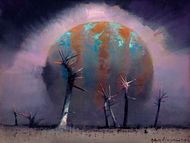 I have been working for nearly 40 years in the field of what is generally understood as science-fiction. I'm hesitant to use that expression, because it limits hugely the scope of what's going on here. Although much of this does seem to be squarely in the genre, my preoccupations have always been with the underlying feelings of vastness and ascendancy that often accompany such imagery. I prefer to use the term Imaginative Realism.
